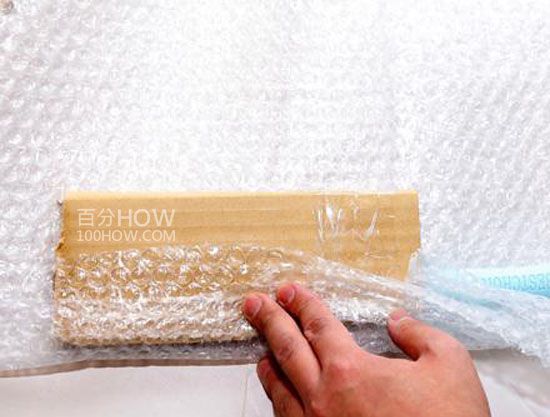 c、最后用氣泡布包好菜刀的瓦楞紙?jiān)俅伟纯伞?/span>